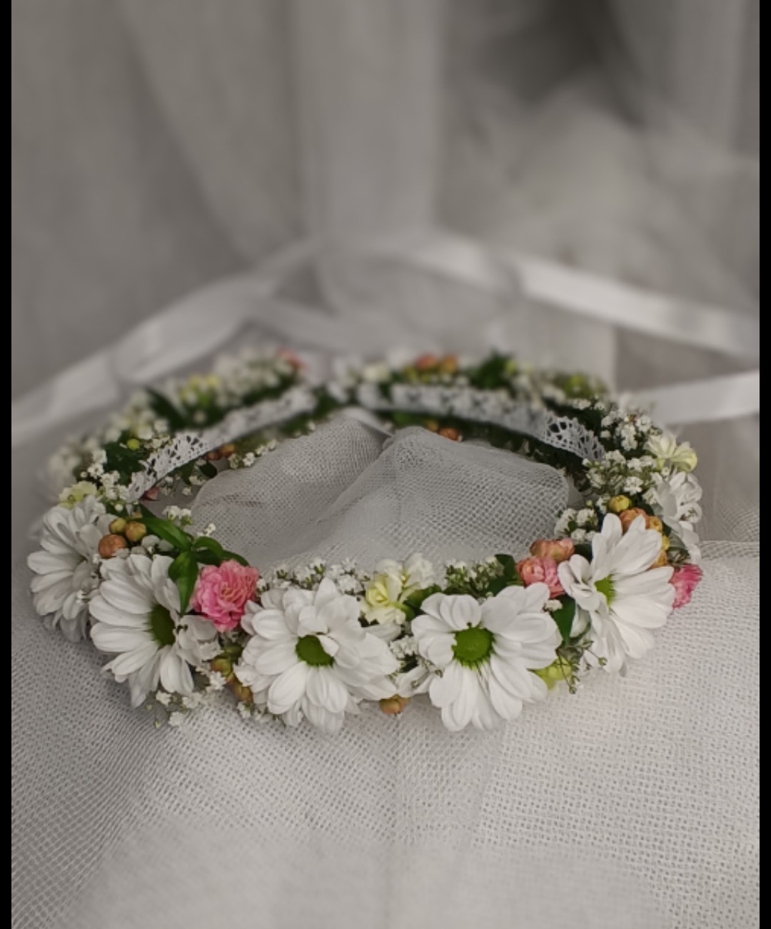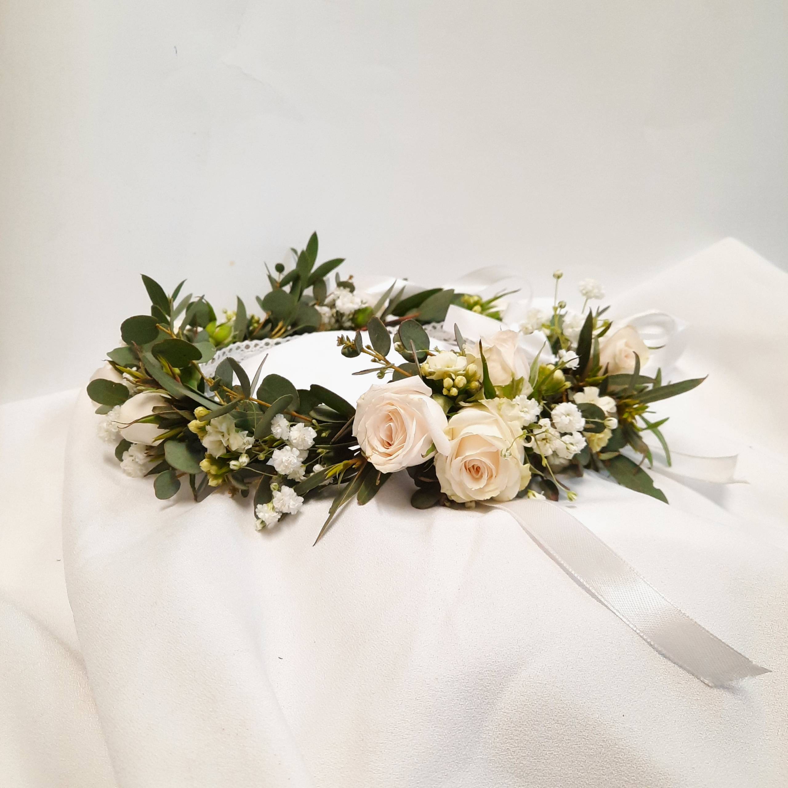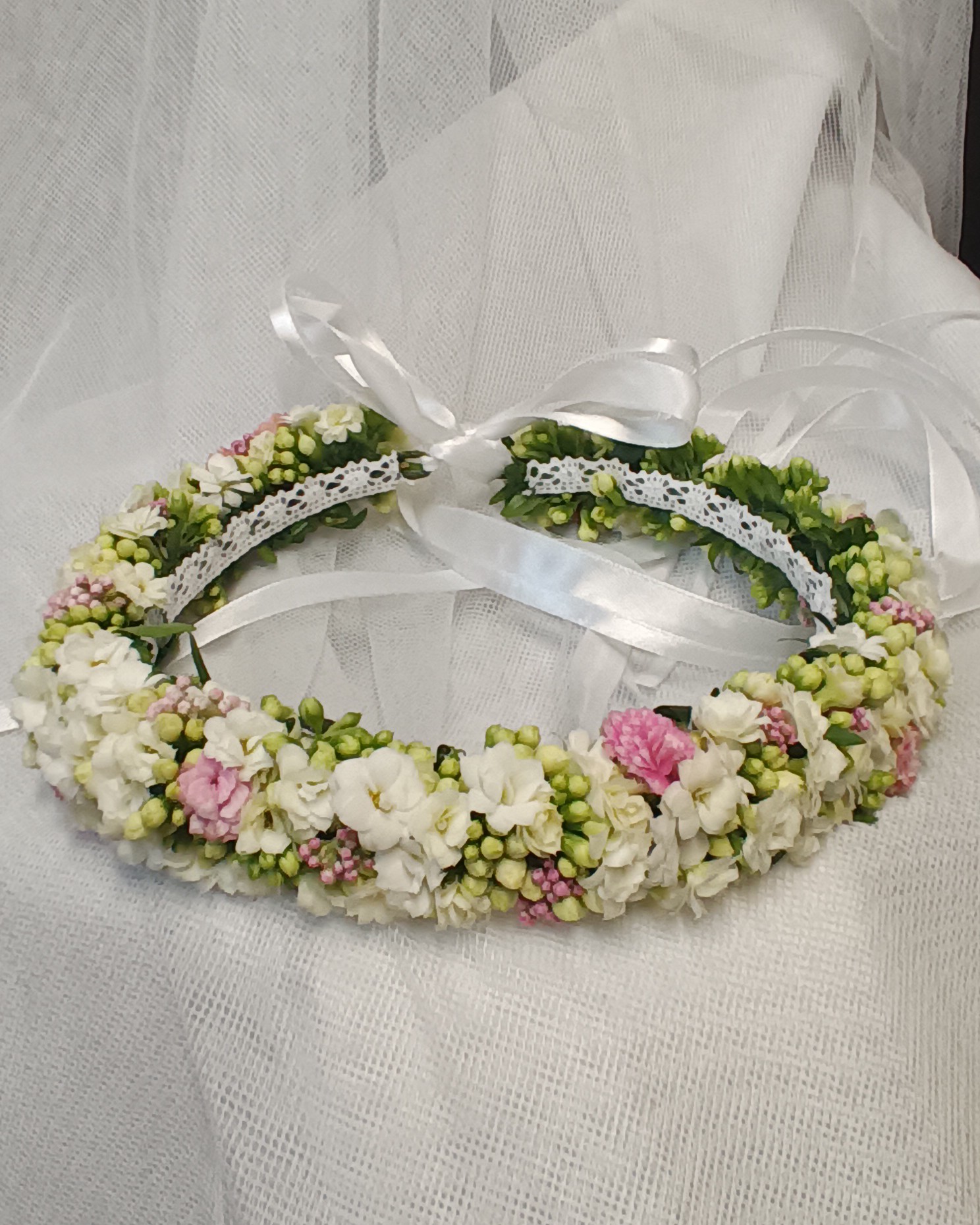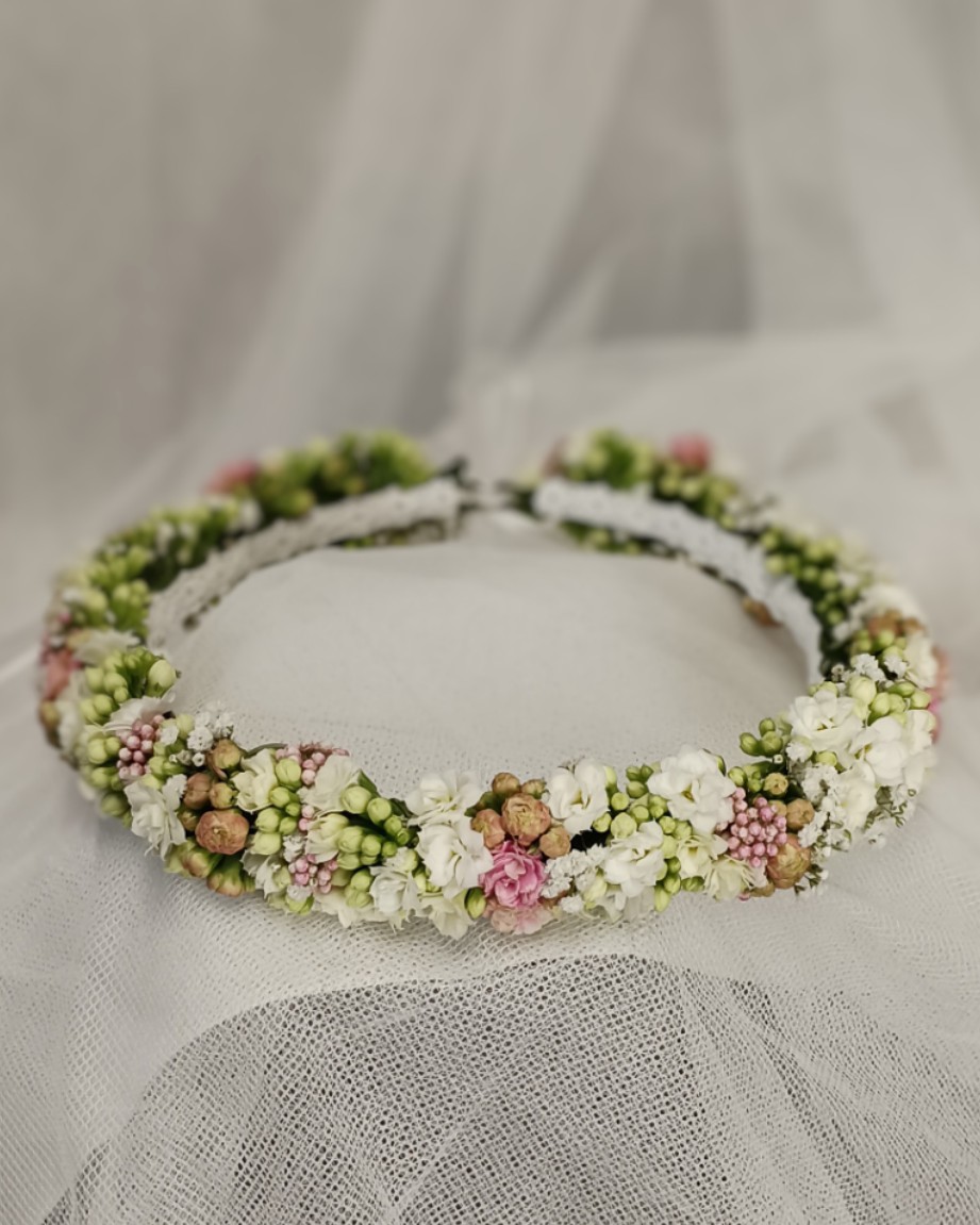 Wszystkie moje bukiety oraz wianki wykonuję ze świeżych kwiatów, co gwarantuje ich piękny wygląd przez całą uroczystość. Kwiaty na chrzciny i komunie można zamawiać telefonicznie pod nr 690-877-921 lub osobiście w Kwiaciarni Wiosenna. Zapraszam.
