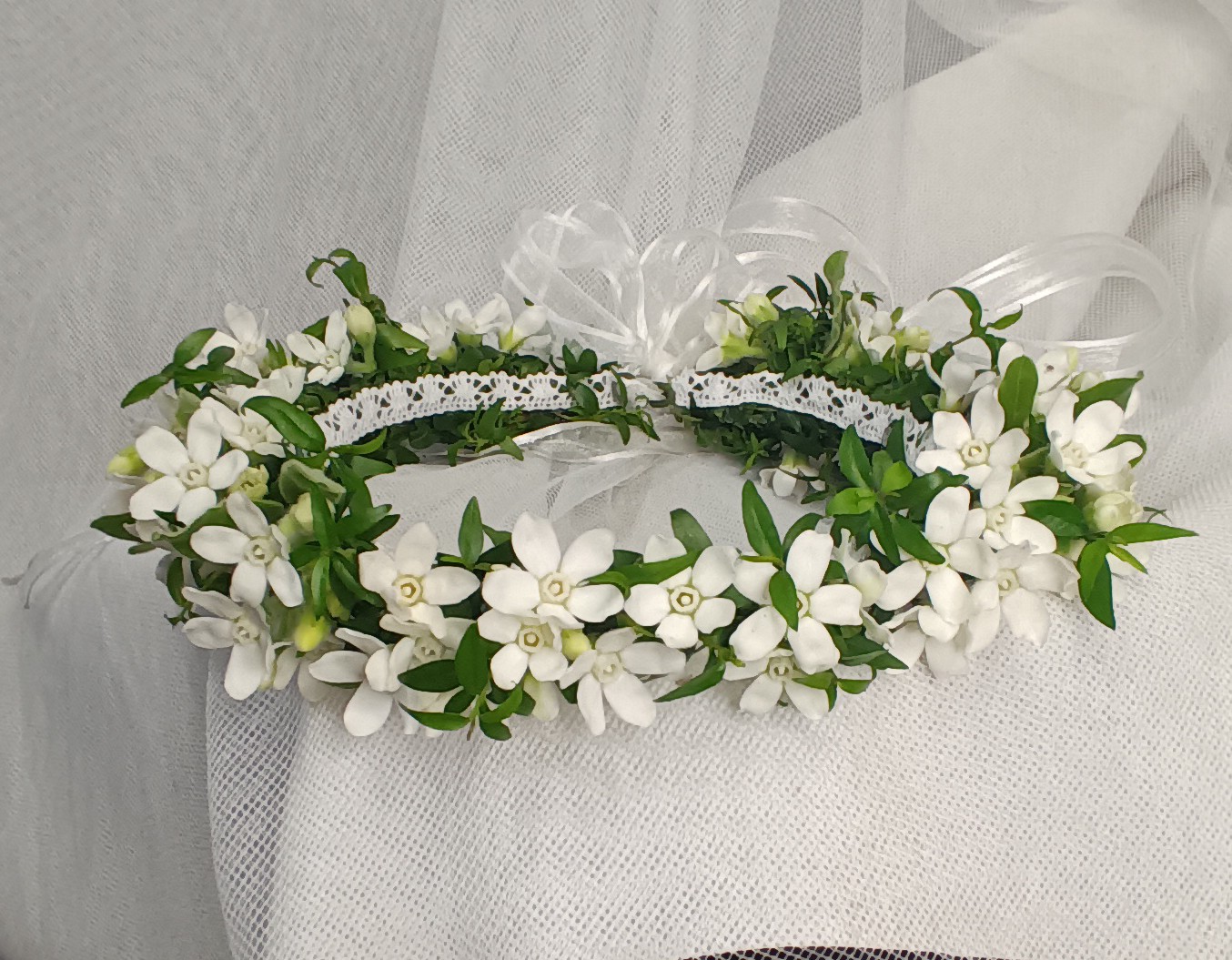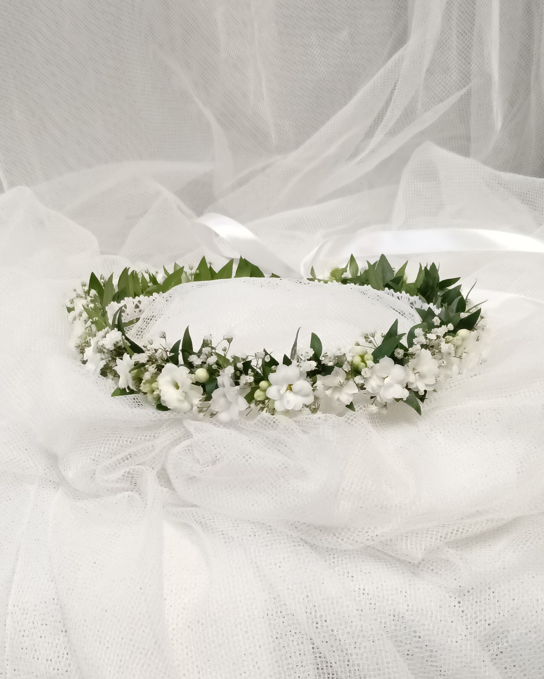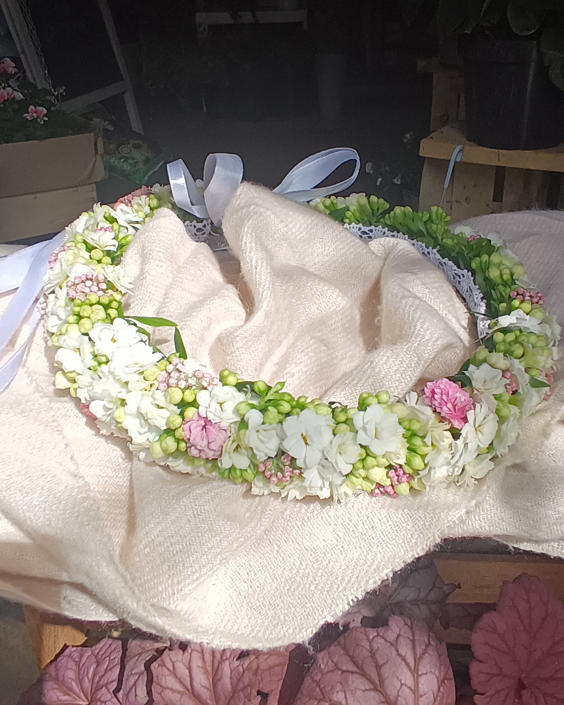 Wszystkie moje bukiety oraz wianki wykonuję ze świeżych kwiatów, co gwarantuje ich piękny wygląd przez całą uroczystość. Kwiaty na chrzciny i komunie można zamawiać telefonicznie pod nr 690-877-921 lub osobiście w Kwiaciarni Wiosenna. Zapraszam.
